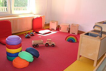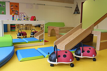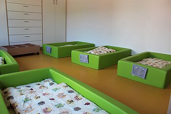 Die Räumlichkeiten sind speziell für die Bedürfnisse kleiner Kinder ausgestattet. Auch ein U3-Außengelände ist ganz auf die Kinder zugeschnitten und hier wird mit viel Spaß gematscht, gebuddelt und geschaukelt. Zurückziehen können sich die Kinder im gemütlichen Schlafraum.